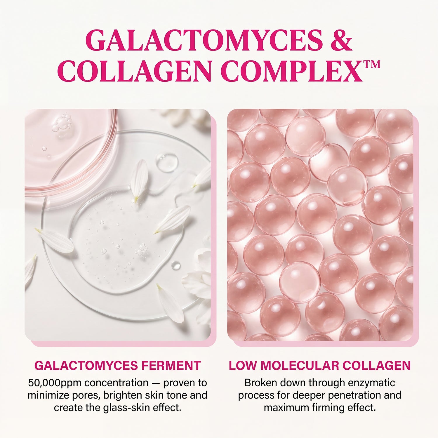 Galactomyces Ferment Filtrate — the Korean "glass skin" ingredient — brightens and evens tone overnight.